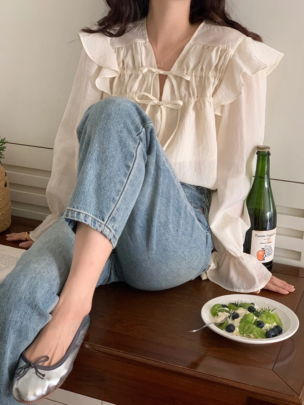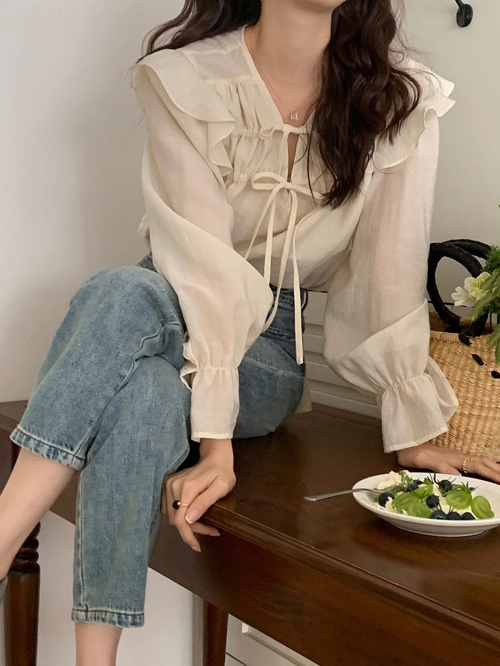 Ele Purple Long Sve irt Women's Design Sensation Lace Trim Faionable Top Spring Summer New Arrival