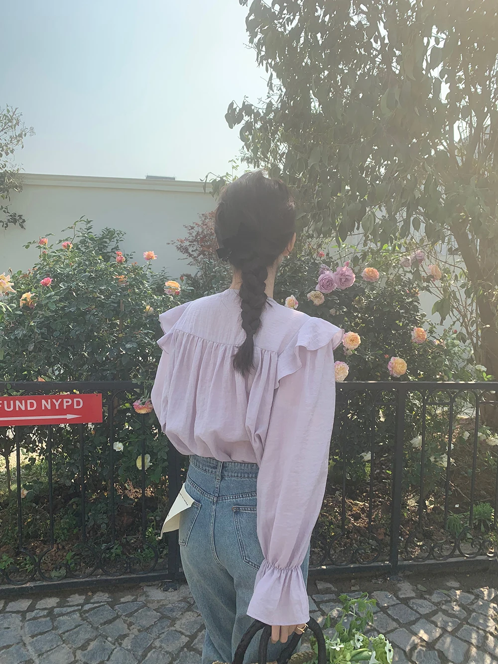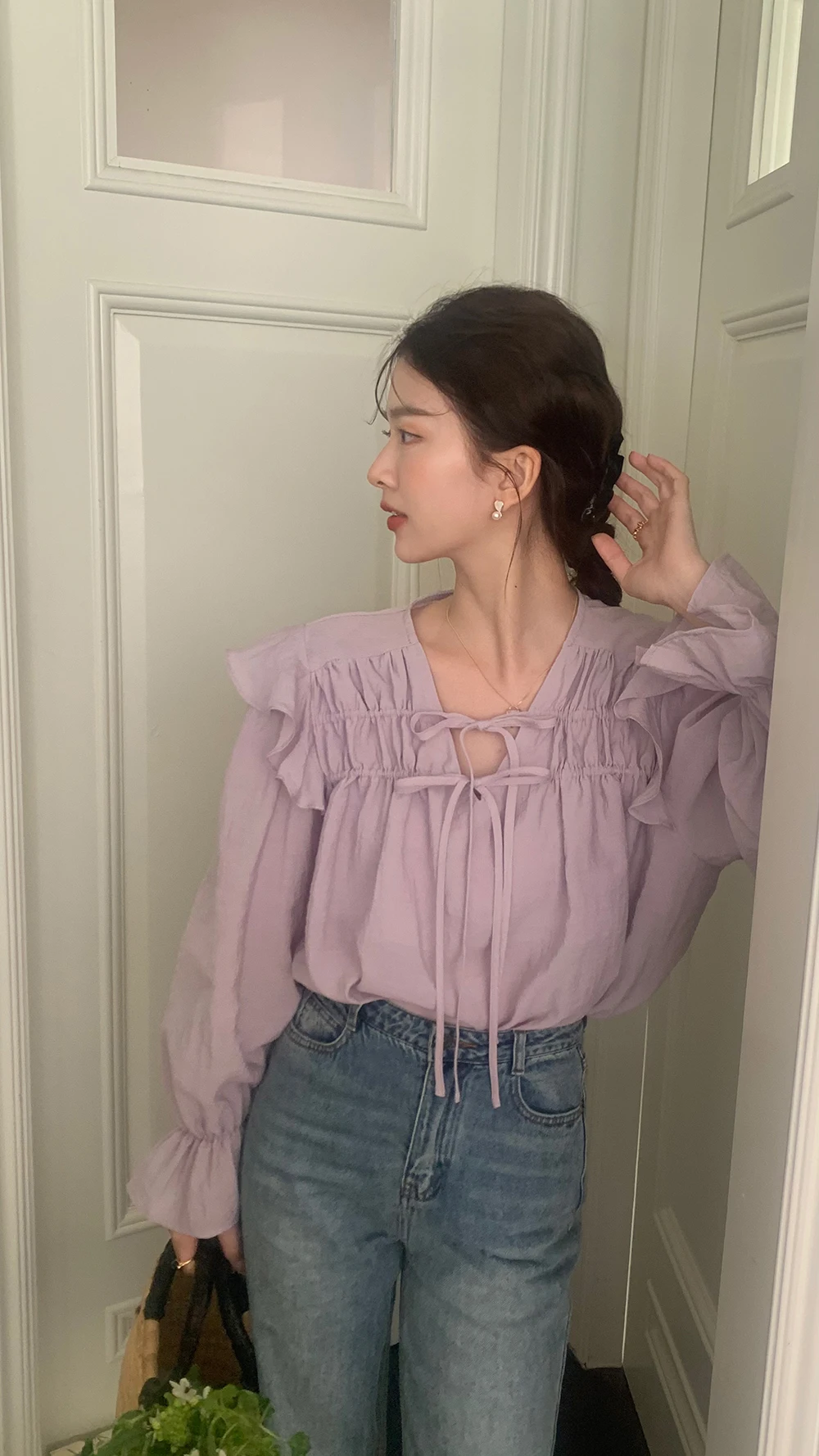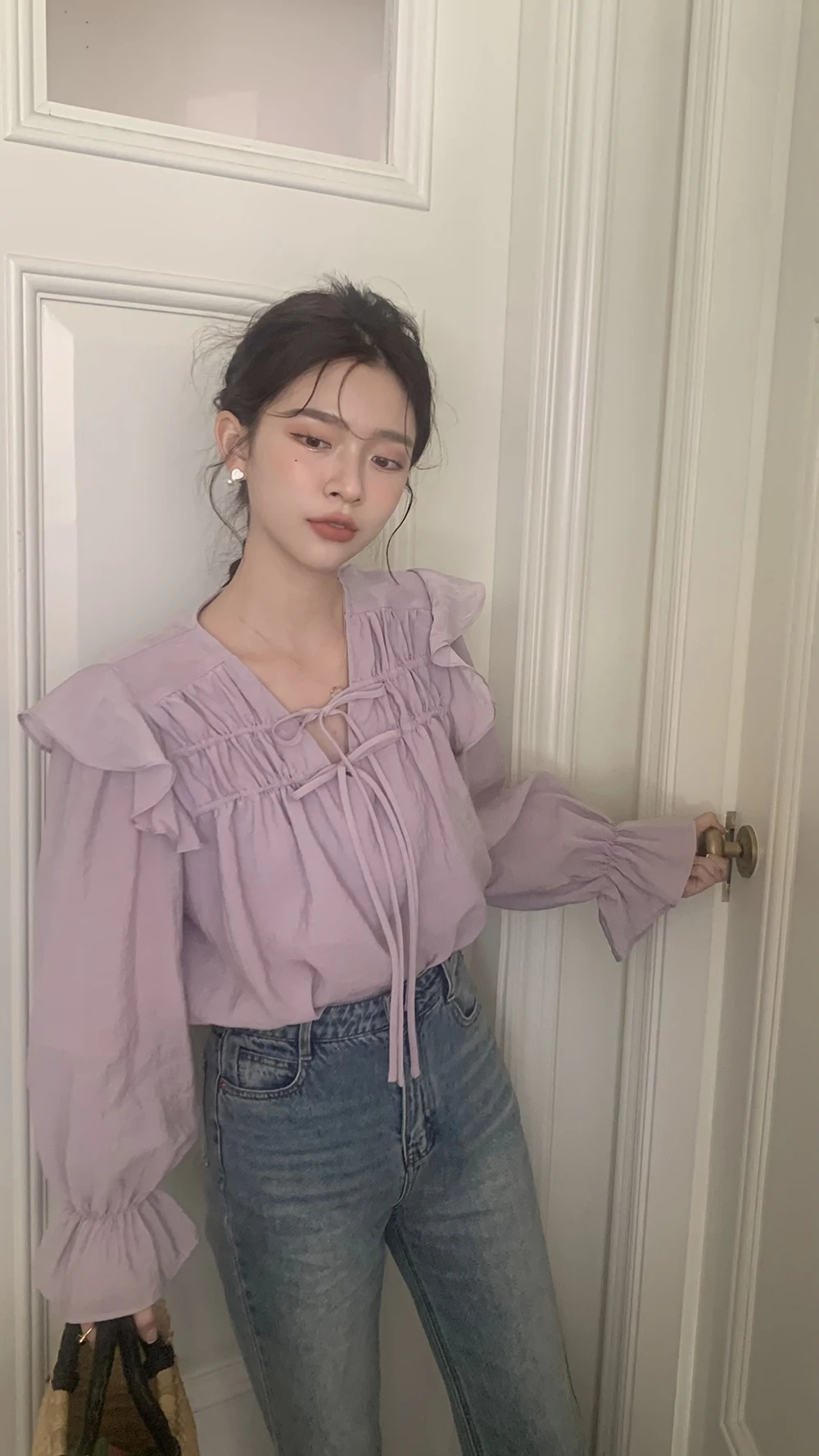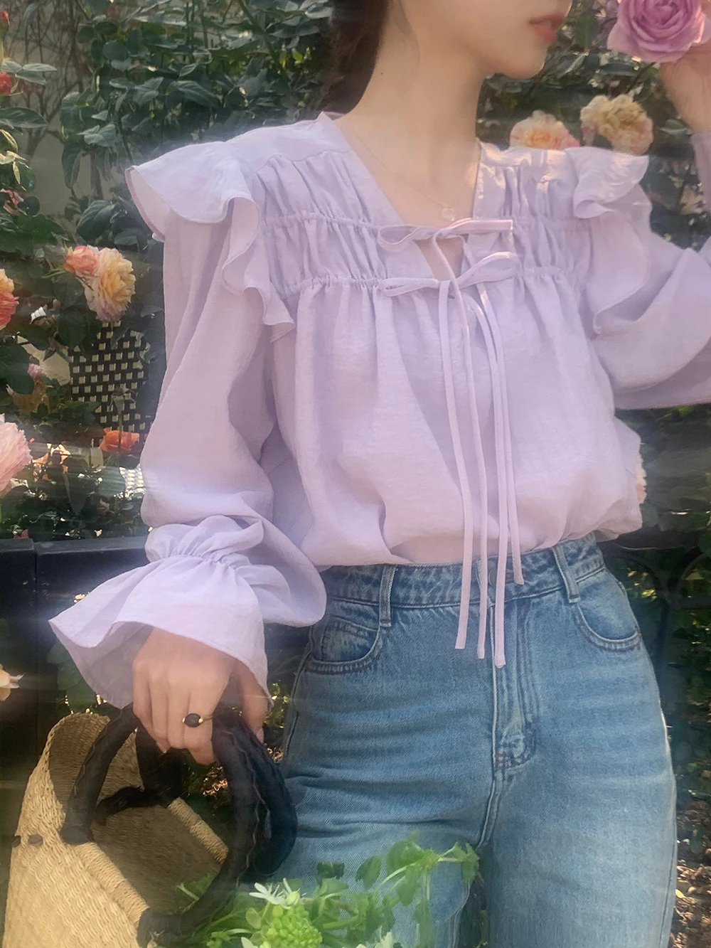 The sweet purple color adds a touch of elegance and femininity to this long-sleeve shirt.