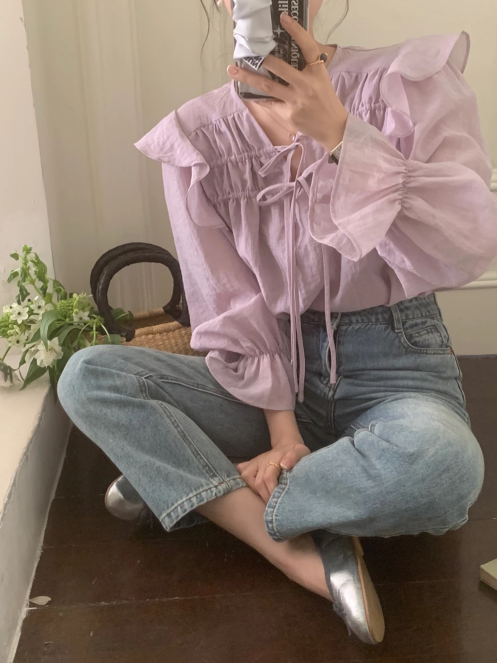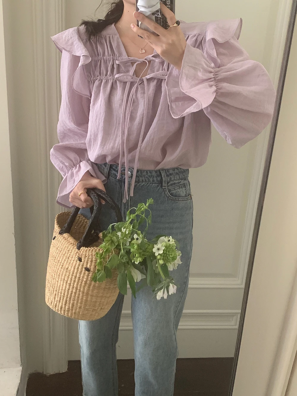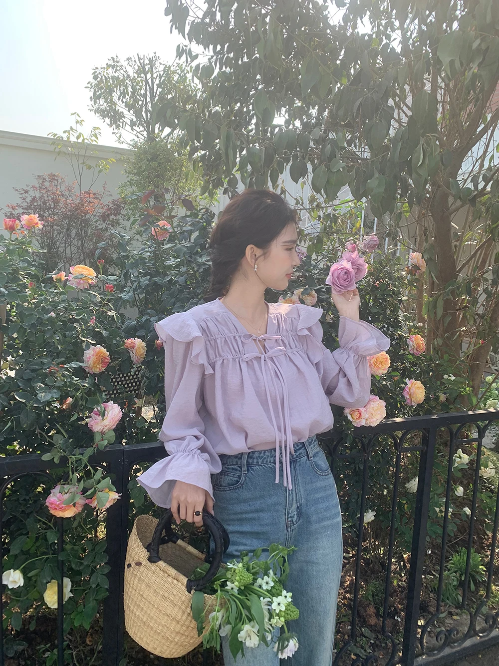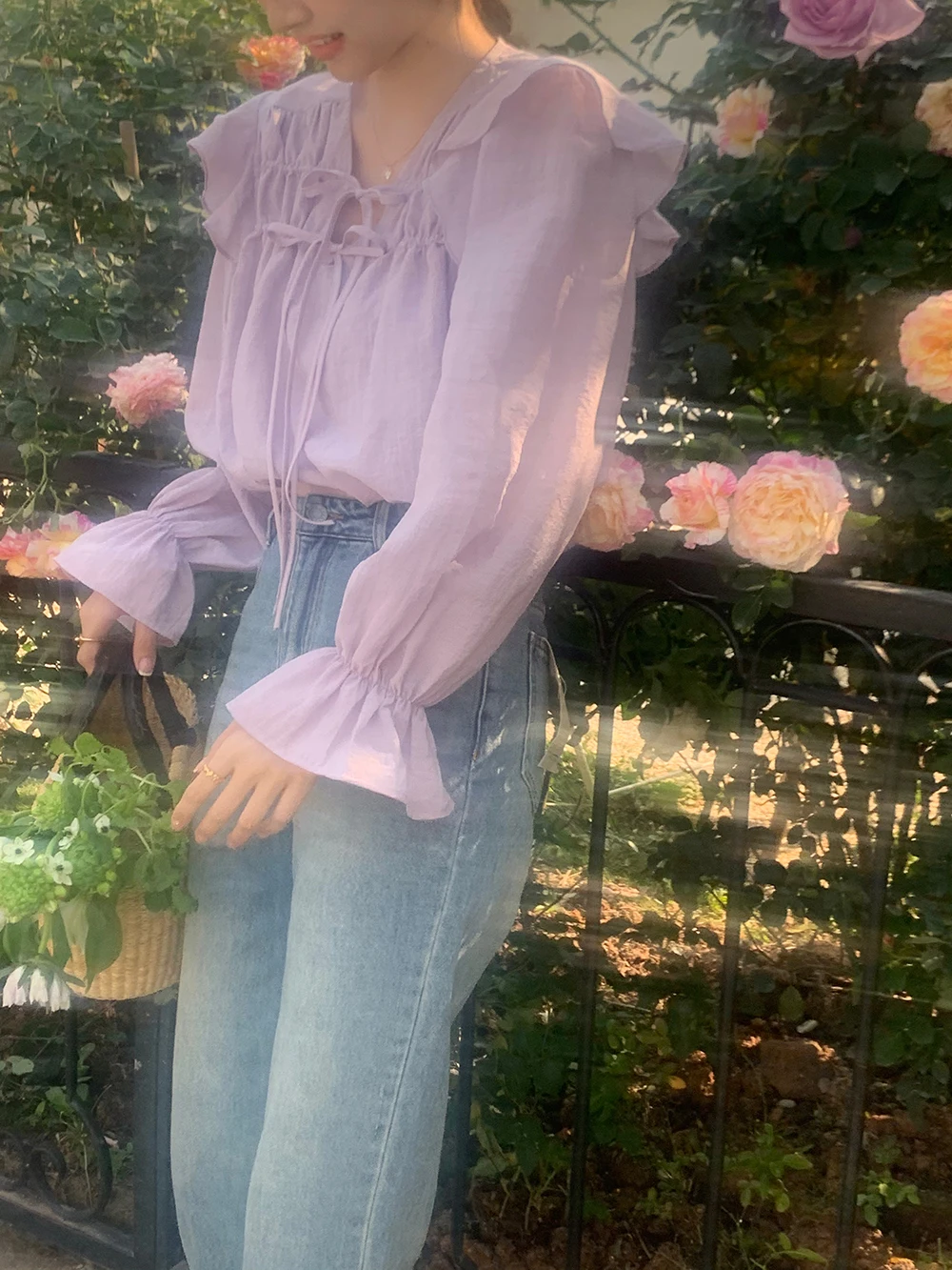The sweet purple color adds a touch of elegance and femininity to this long-sleeve shirt.