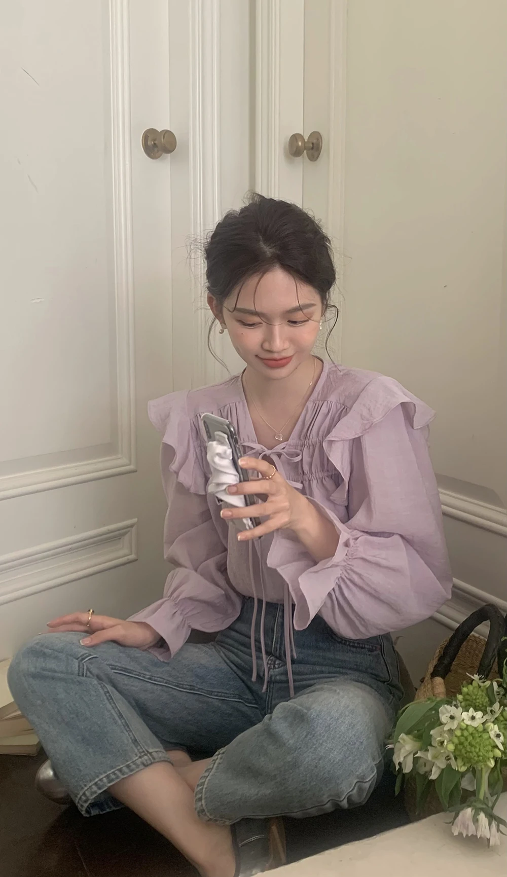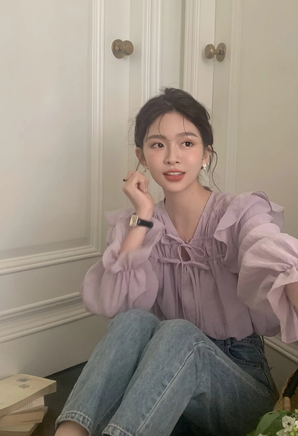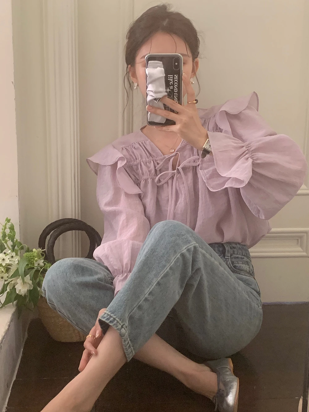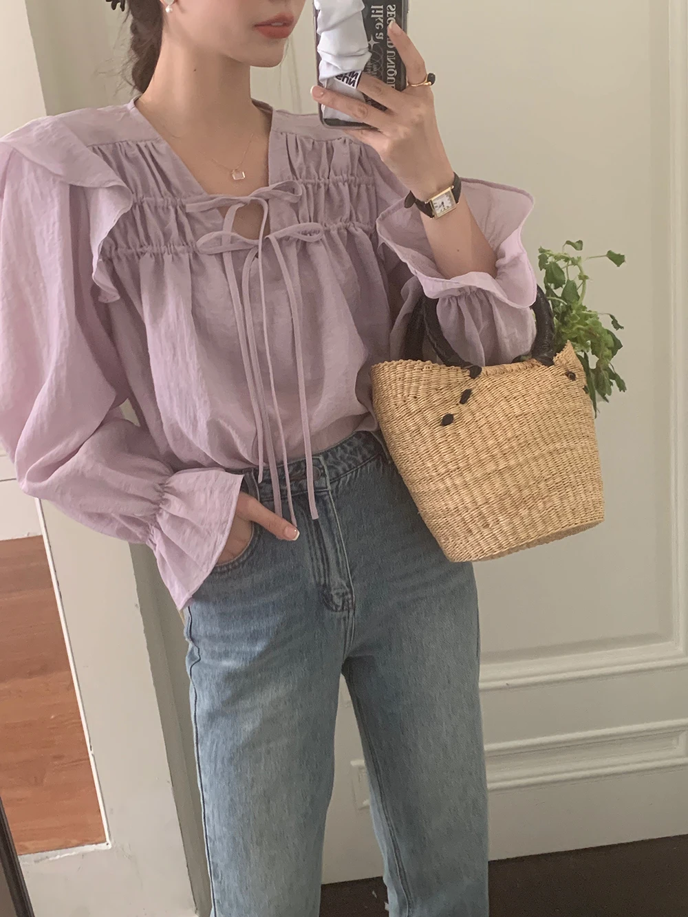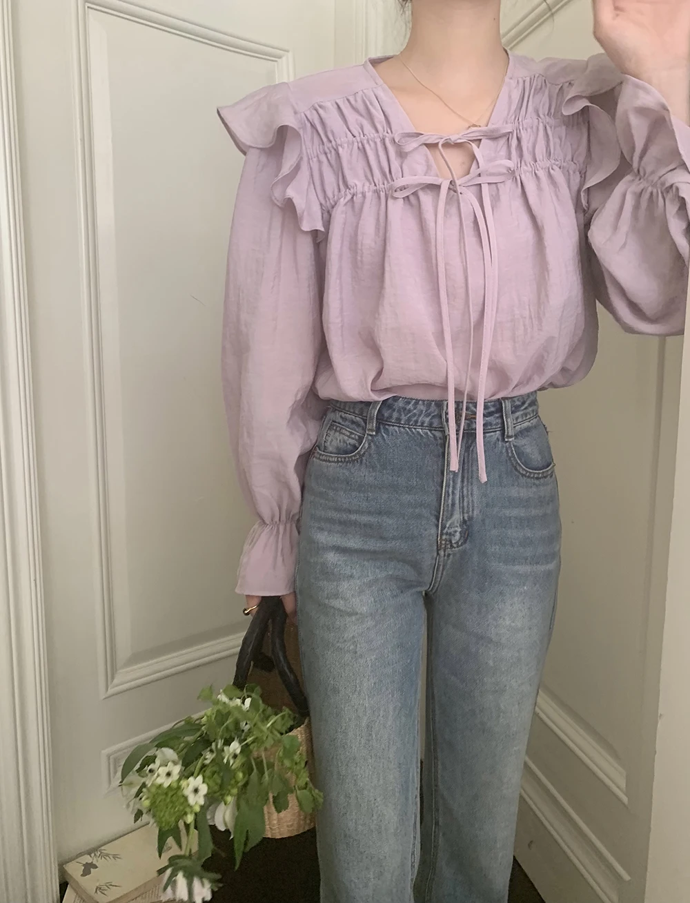 The sweet purple color adds a touch of elegance and femininity to this long-sleeve shirt.