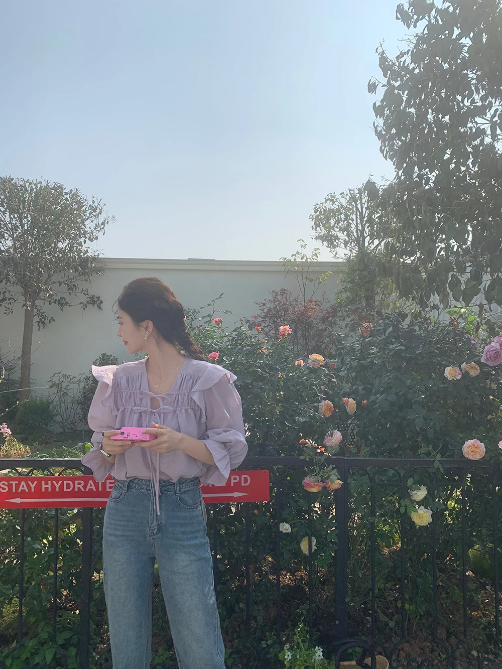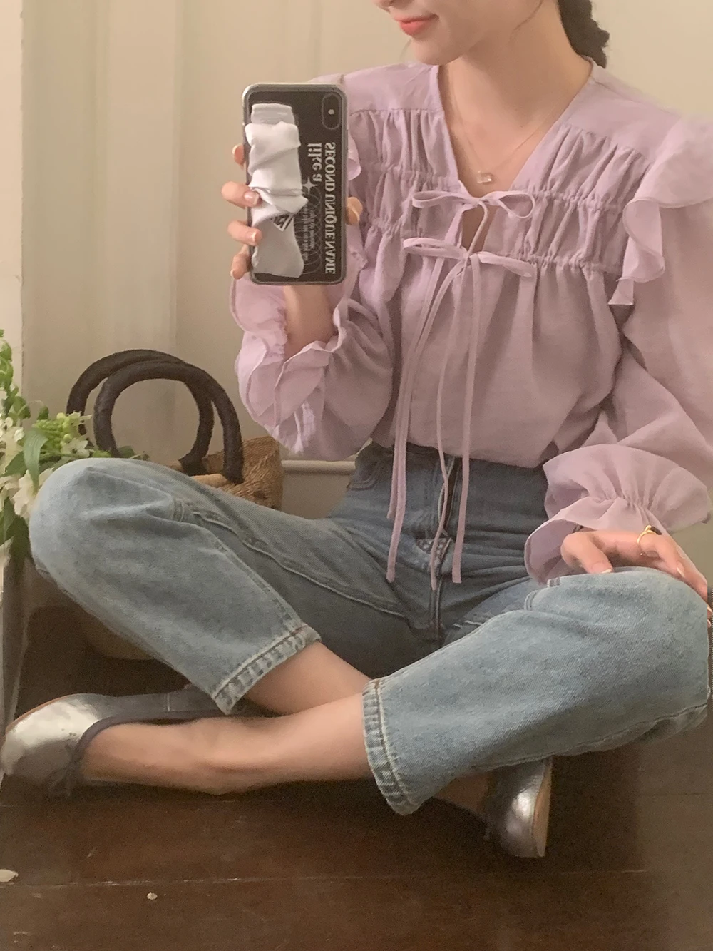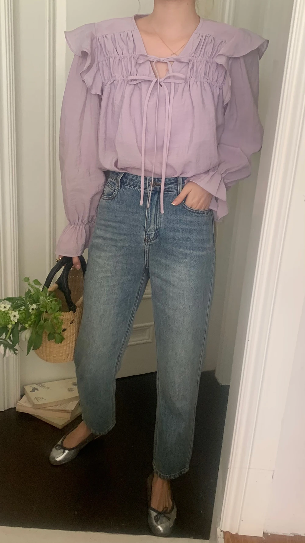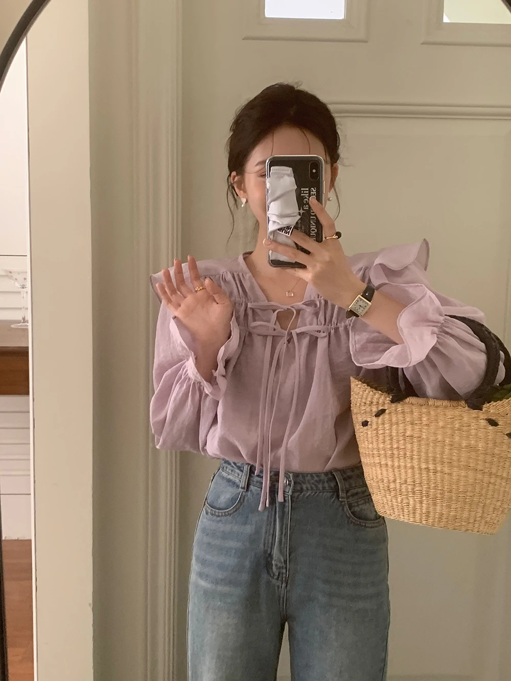 The sweet purple color adds a touch of elegance and femininity to this long-sleeve shirt.