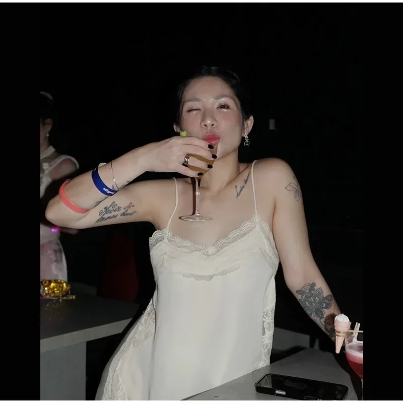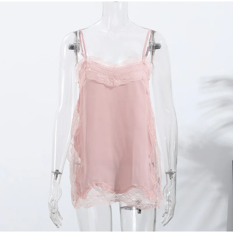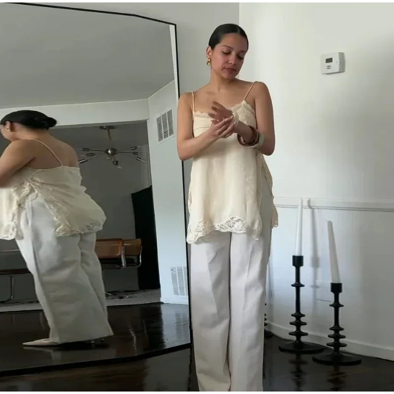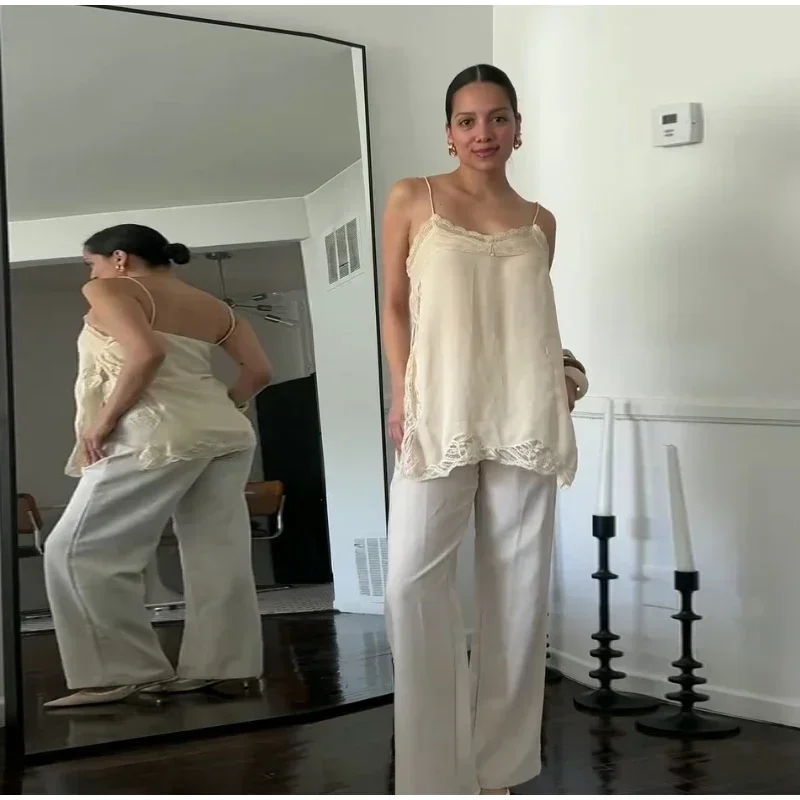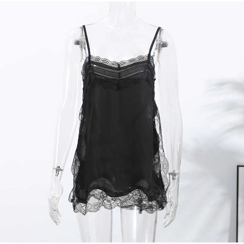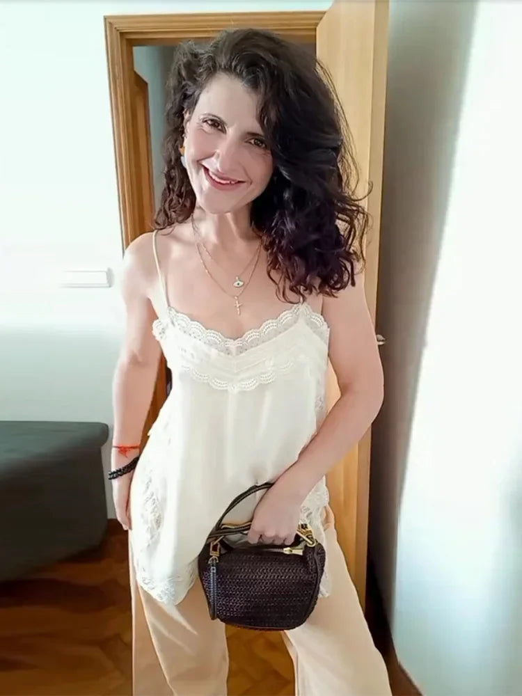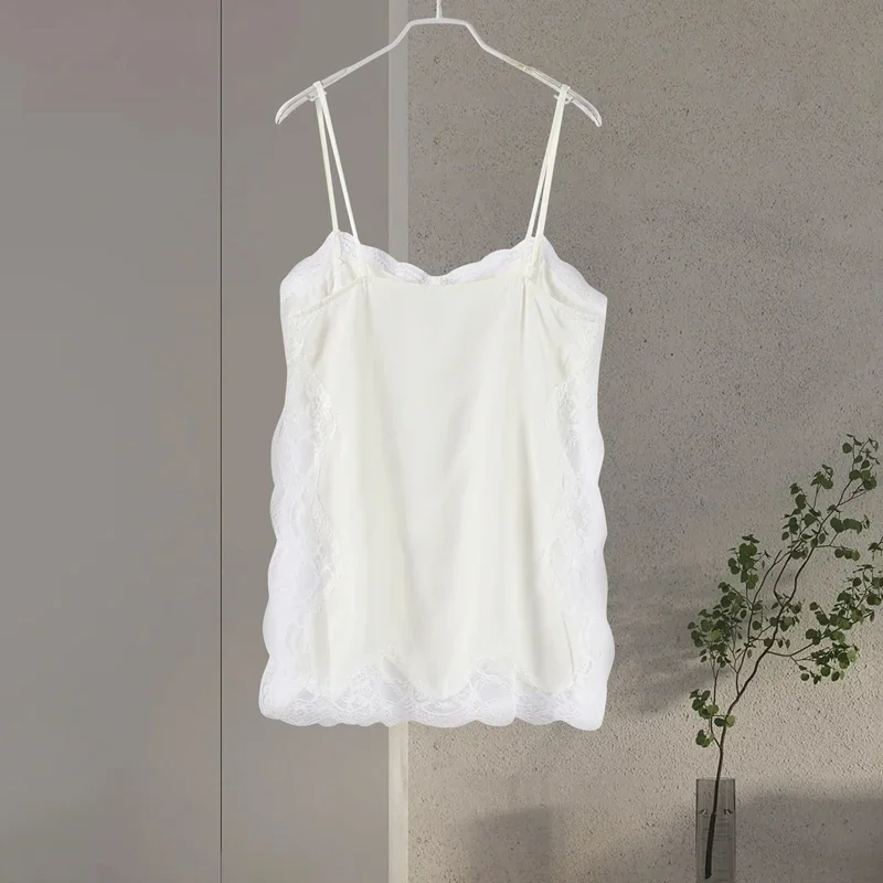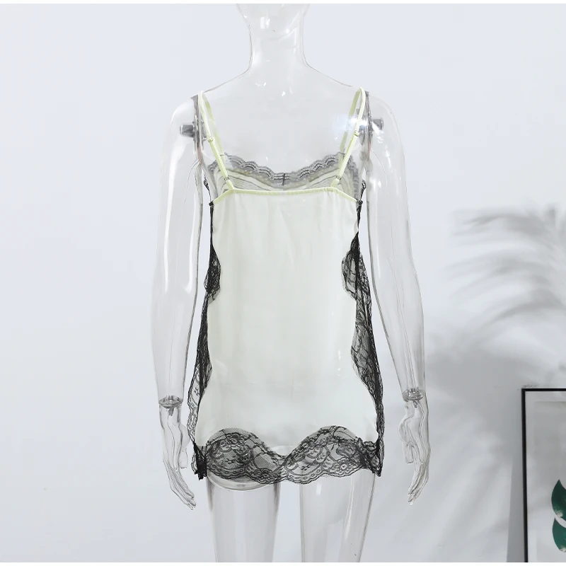 Elegant Stain Lace Tank Women Sleeveless Backless Tube Top Solid Lady Tanks 2025 Fashion Split Female Strap Outwear