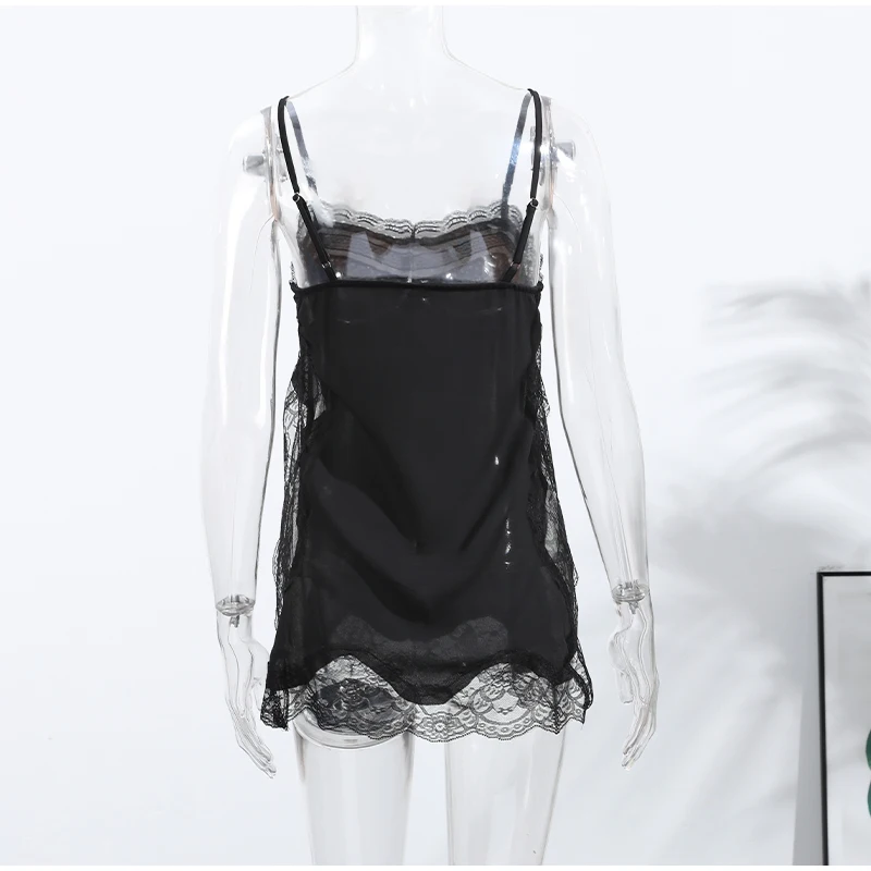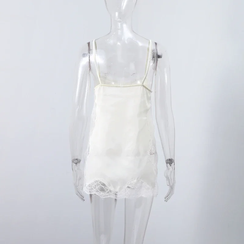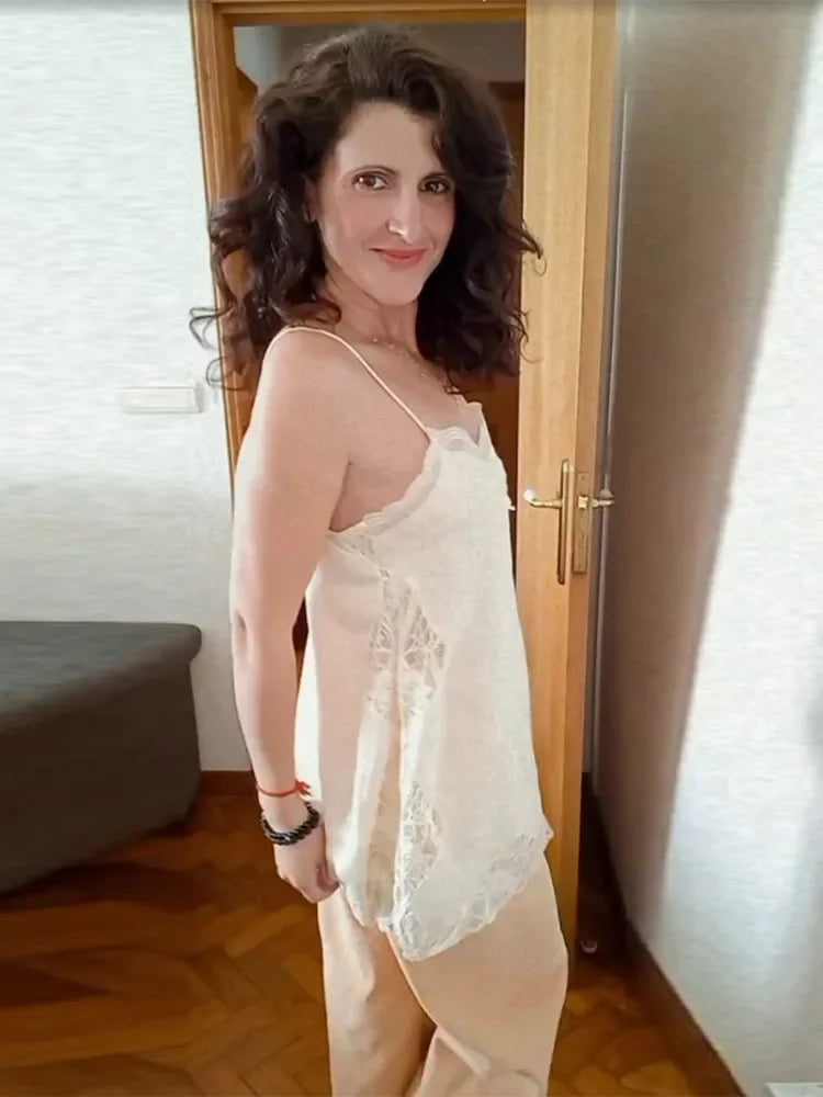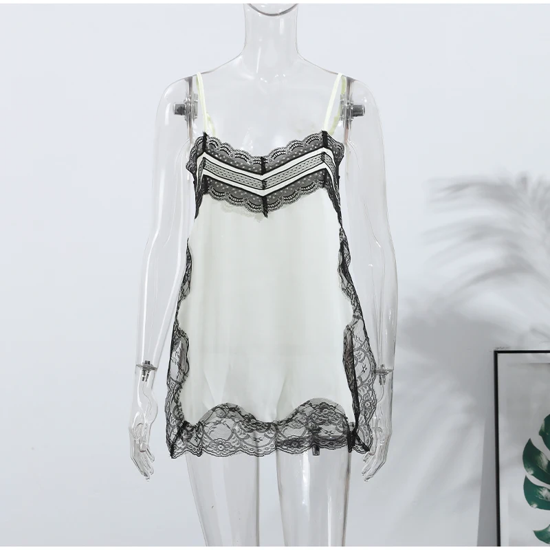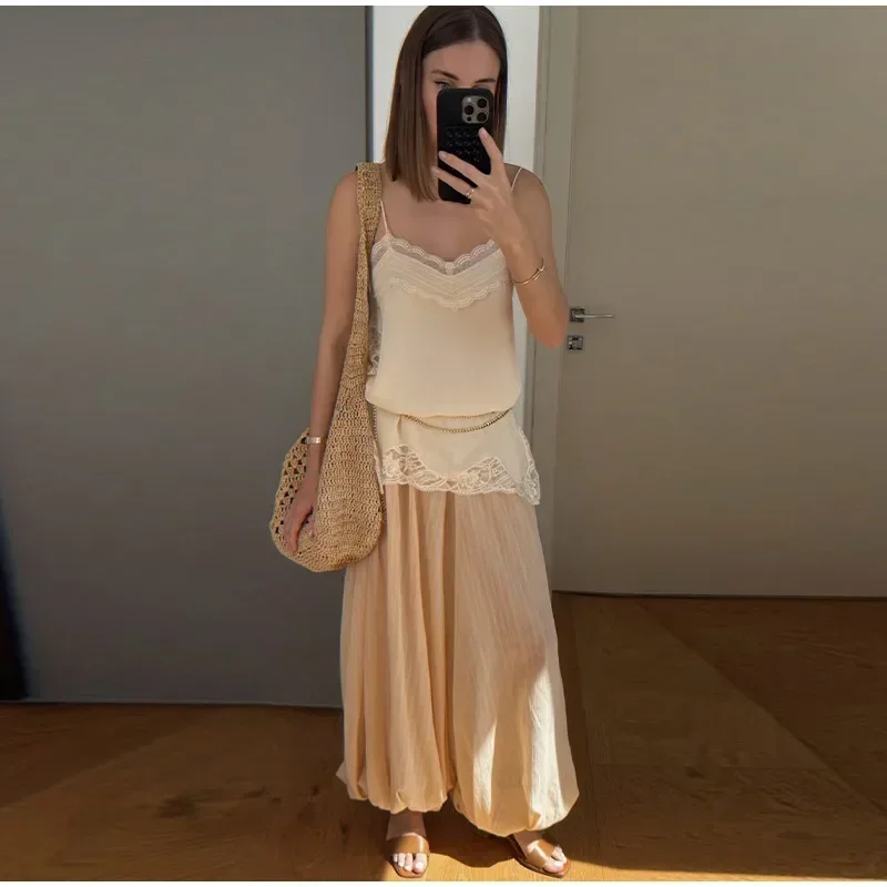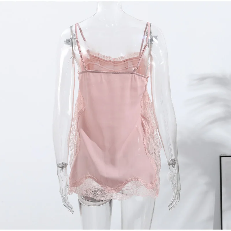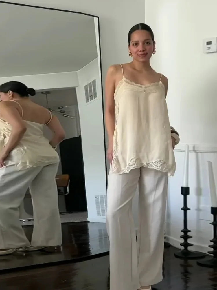 Elegant Stain Lace Tank Women Sleeveless Backless Tube Top Solid Lady Tanks 2025 Fashion Split Female Strap Outwear
