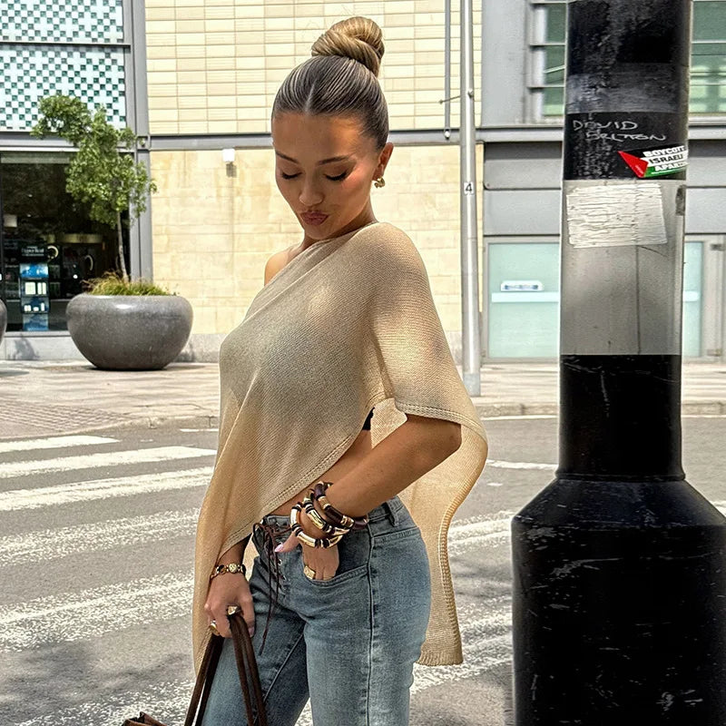 Women Sheer Knit Poncho Lightweight Shrug Pullover Shawl Top Off Shoulder Knitted Cover Up Tops Summer Holiday Beachwear